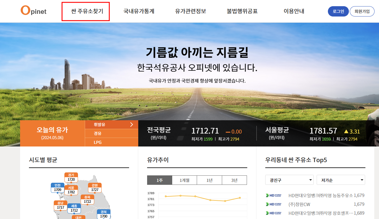 오피넷 홈페이지에서 싼 주유소 찾기 지도보기 서비스를 이용하시게 되면, 싼 주유소를 금방 찾으실 수 가 있습니다.
