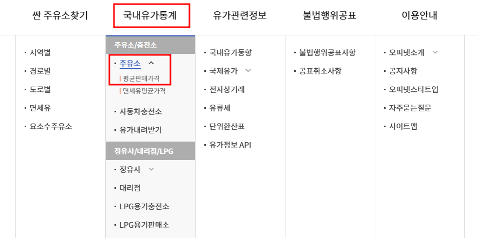 오피넷 홈페이지에 접속을 하시게 되면 숨은 꿀기능이 있는데요. 그것은 바로 '평균판매가격' 입니다.