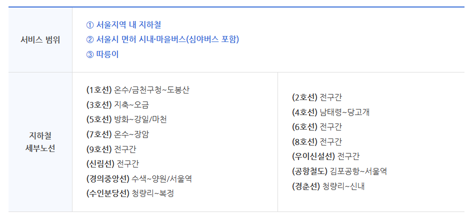 카드 이용 가능 서울지역 지하철 세부노선은 아래 이미지를 통해 알 수가 있습니다.
