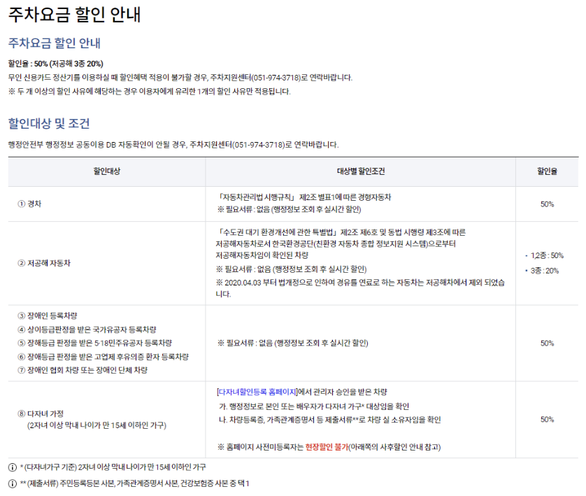 감면 조건에 해당 되신다면 주차 요금 50% 할인 혜택이 제공이 되니 한 번 체크해 보시기 바랍니다.