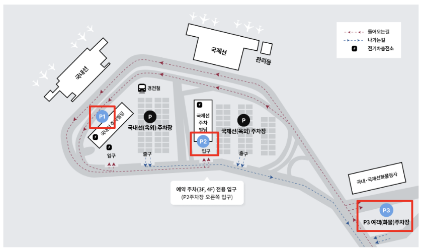 김해공항의 경우 여행객들의 주차 불편을 해소하기 위해서 주차예약 서비스를 제공중에 있습니다. 입차 시간 2시간 이전부터, 최대 30일까지 예약이 가능한데요. 예약이 가능한 주차장의 위치는 P2 여객주차빌딩 3층, 4층이니 이용 전에는 위치를 확인하시고 불편이 발생하지 않도록 하시는게 좋습니다.