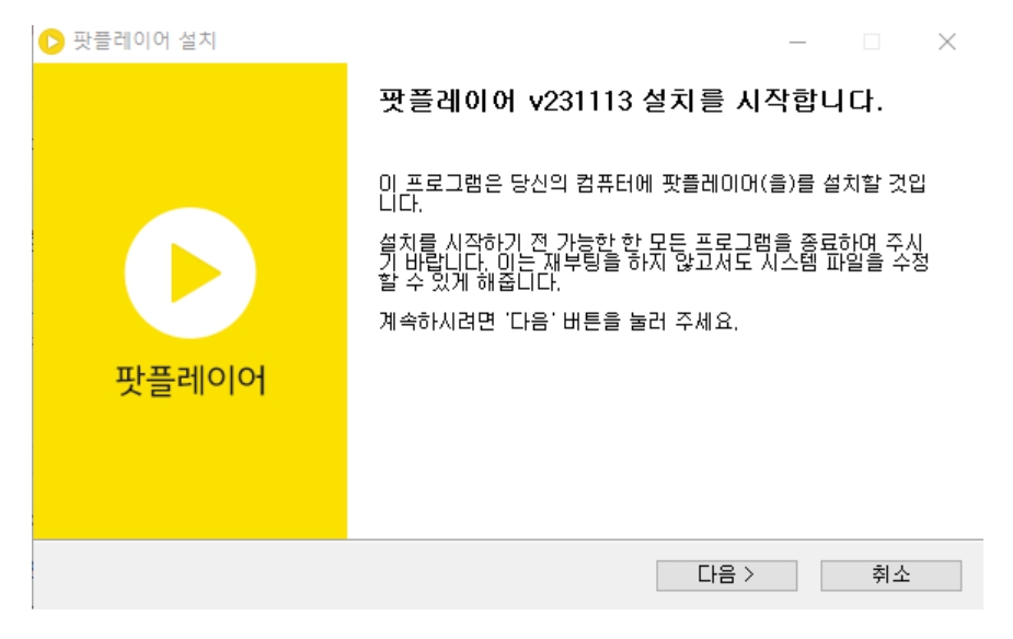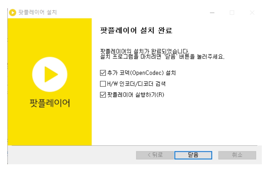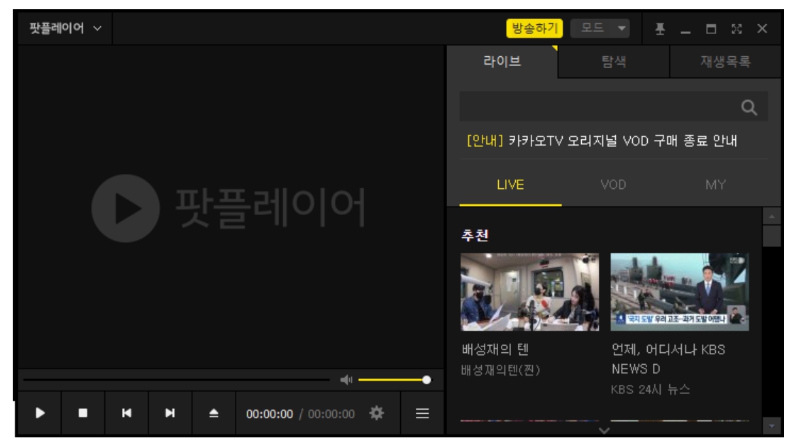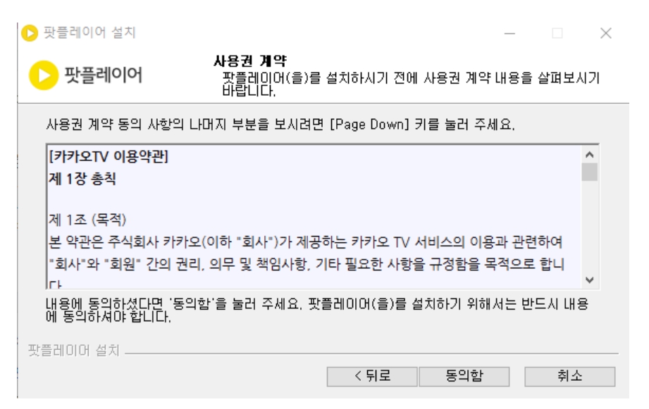 설치가 완료가 되면 자동으로 카카오tv 팟플레이어가 실행이 됩니다.