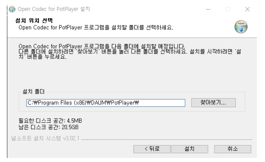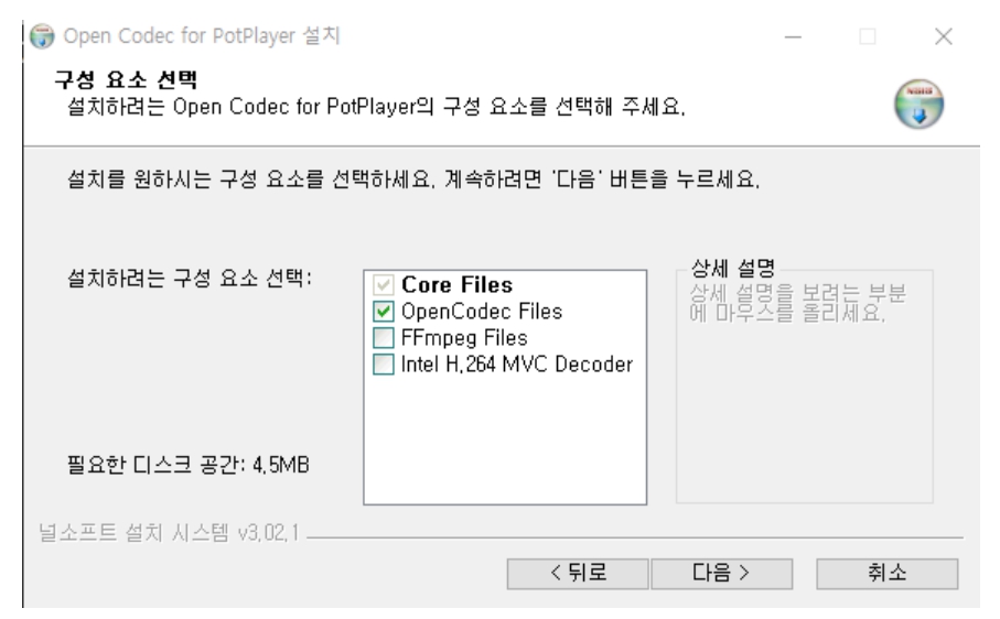 설치 코덱은 아래와 그림같이 그대로 설치를 합니다.