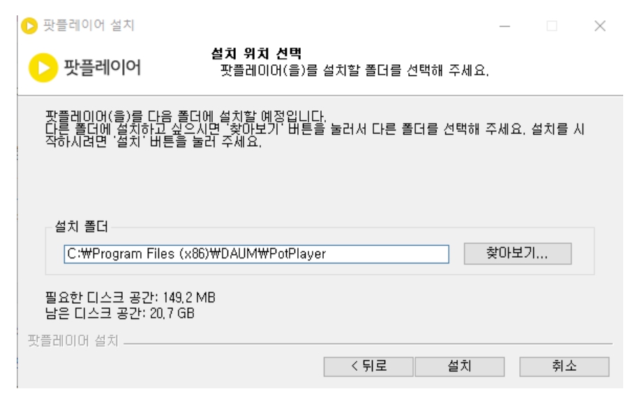 설치폴더를 설정하시고 설치를 누릅니다.