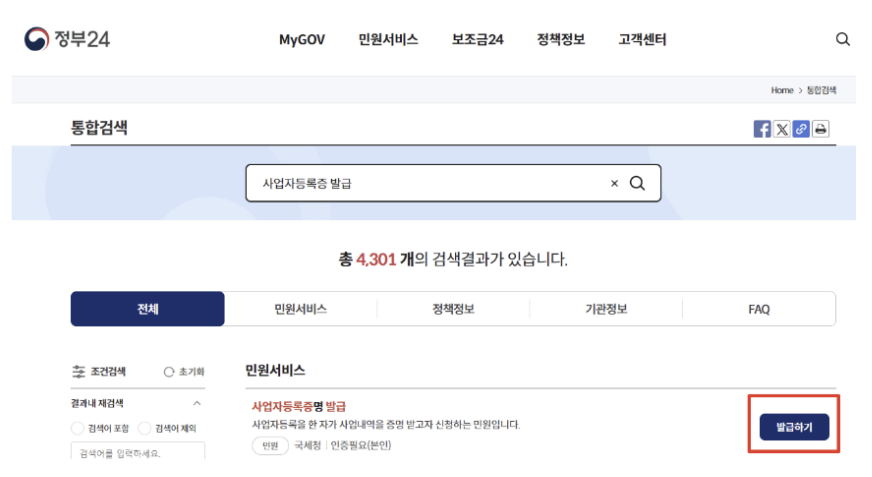 사업자등록증 인터넷 발급방법 - 정부24