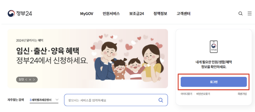 1. 아래 링크를 눌러서 정부24 홈페이지에 접속합니다.