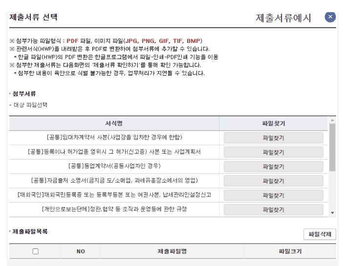 필요서류를 PDF,JPG파일 등으로 준비하여 첨부하시면 됩니다.