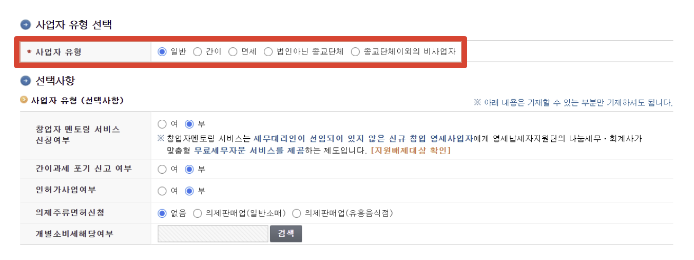 6. '사업자 유형'은 매출을 기준으로 선택하시면 됩니다.