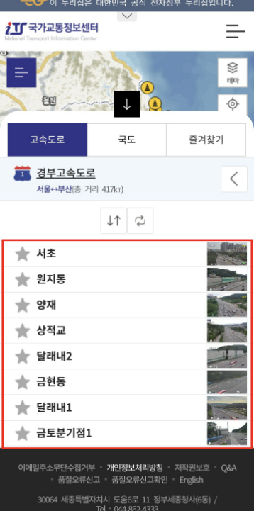 국가교통정보센터를 통해 고속도로, 국도 교통상황 실시간 CCTV보는법은 앱 화면이나 PC화면이 거의 동일합니다.