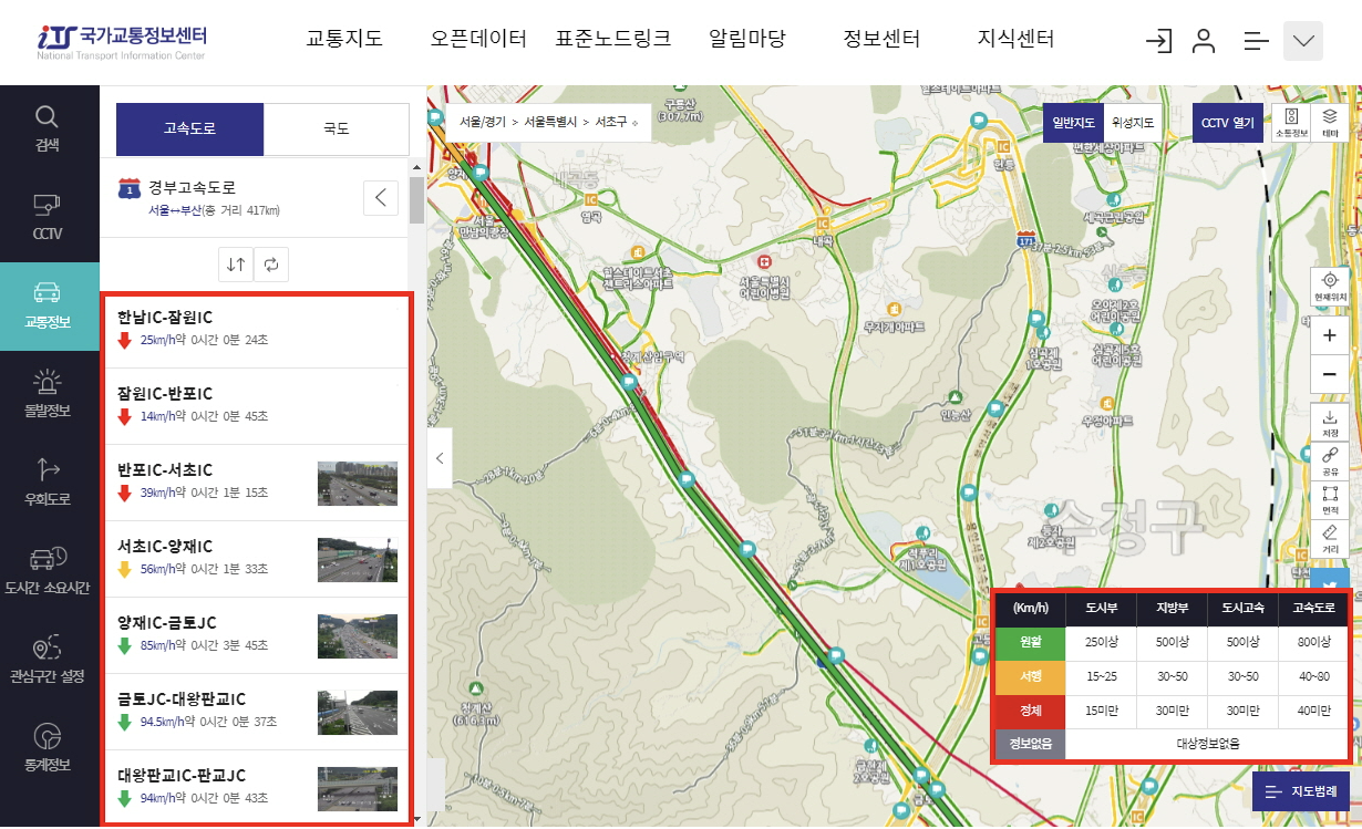 실시간 CCTV 교통정보 보는 방법, 국가교통정보센터