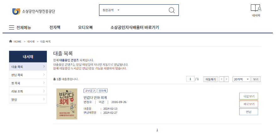 교보문고소상공인지식배움터 전자도서관 이용할 때도 편리합니다.