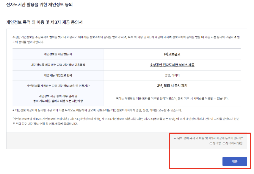 ▶️ 개인정보 동의함을 눌러주시고 제출을 누르시면 됩니다.