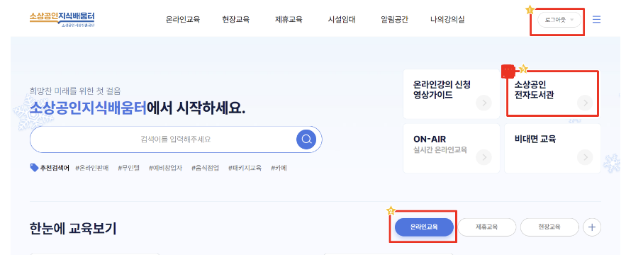 ▶️ 소상공인지식배움터 전자도서관 홈페이지에 접속을 합니다.