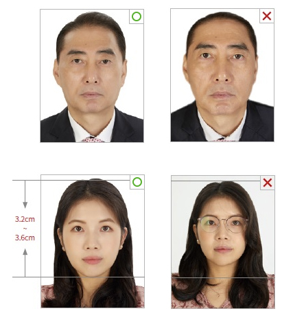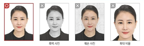 사진이 공식 문서용 사진의 지정된 크기를 충족하지 않으면 신청이 지연되거나 거부될 수 있습니다.