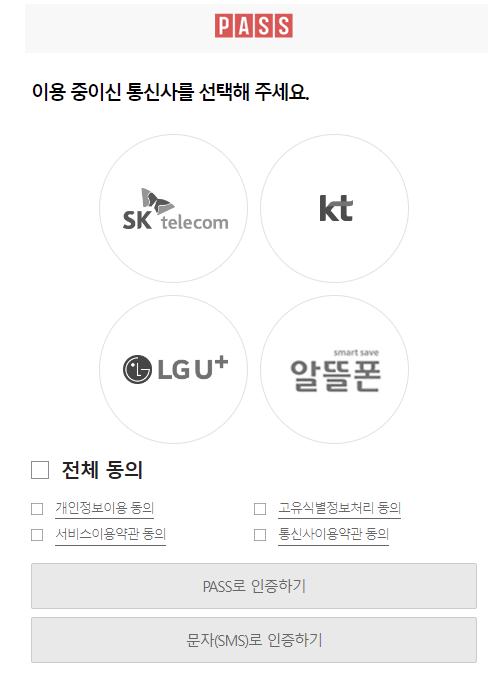 휴대폰으로 본인인증을 해줍니다.