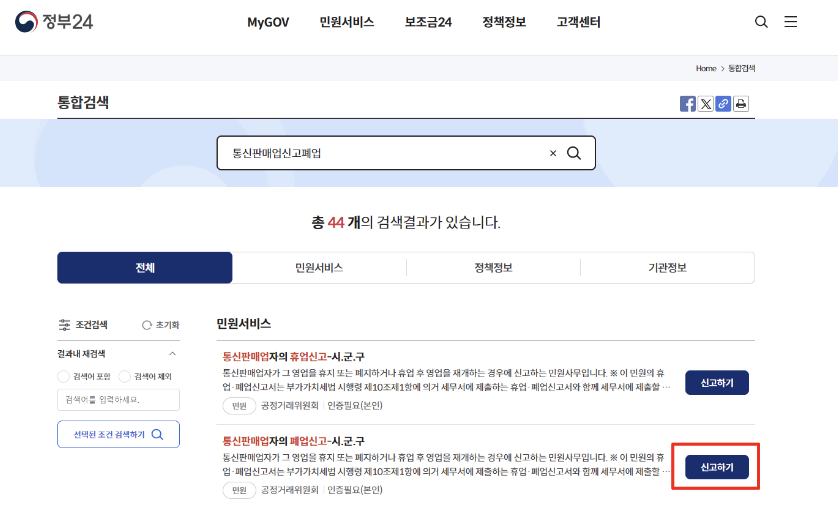 통신판매업 온라인 폐업신고 하는 방법 1. 정부24 홈페이지