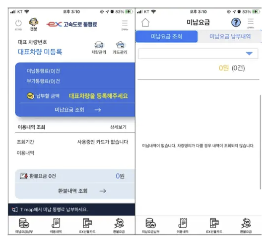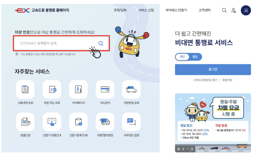 차량 번호만으로도 미납 요금 조회가 가능합니다.